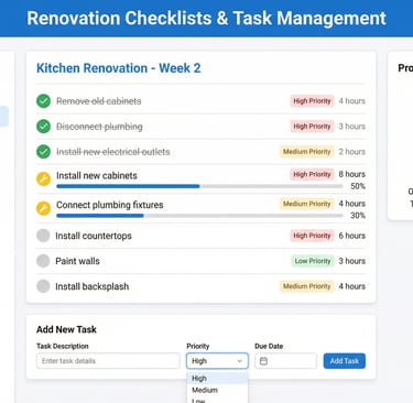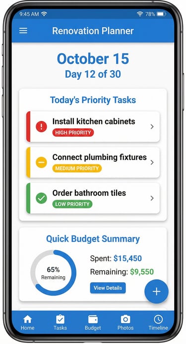 Organize your renovation project from budget to timeline. The perfect tool for homeowners and aspiring project managers.